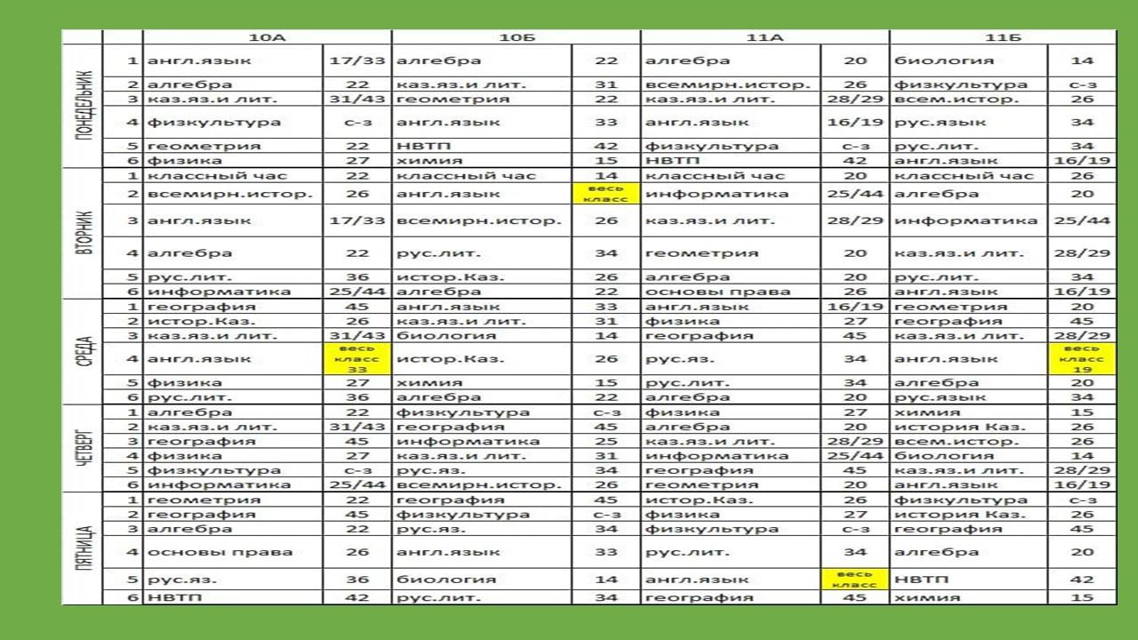 Сабақ кестесі