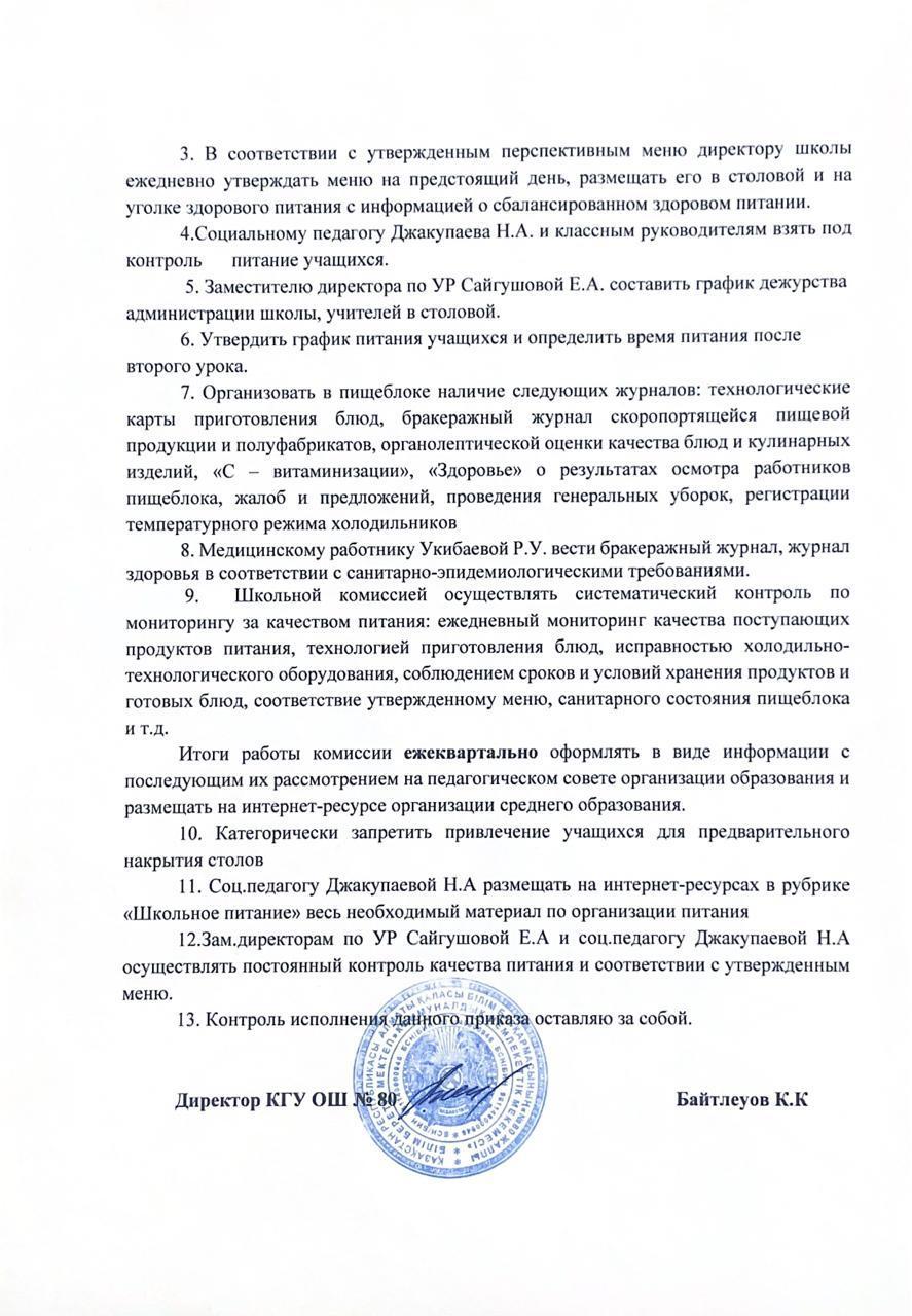 » Приказ об организации питания